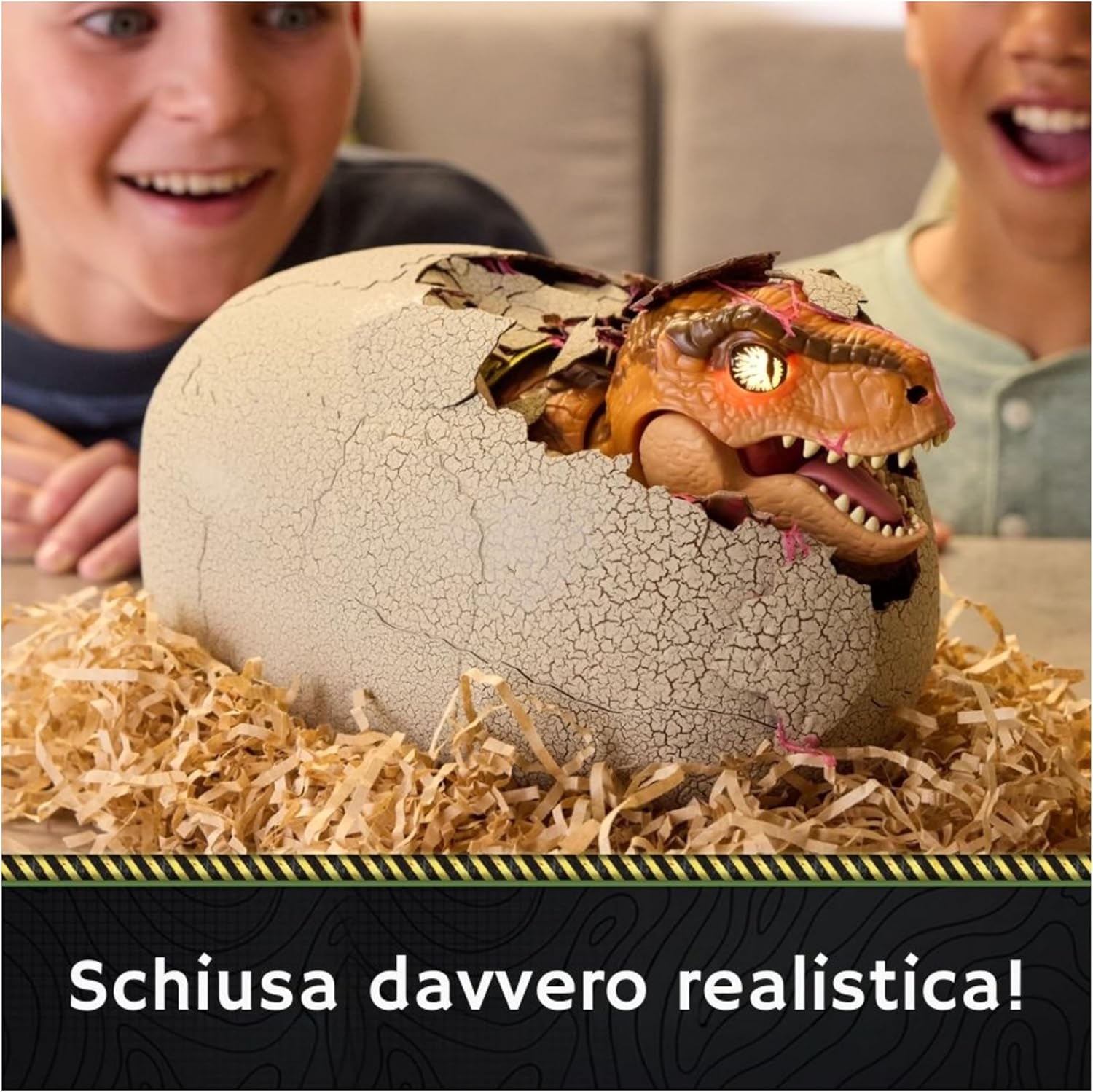 Schiusa realistica e sorprendente L’attesa è parte della magia: osserva l’emozionante apertura dell’uovo mentre il dinosauro rompe il guscio e prende vita. Un momento affascinante che incanta bambini e adulti.