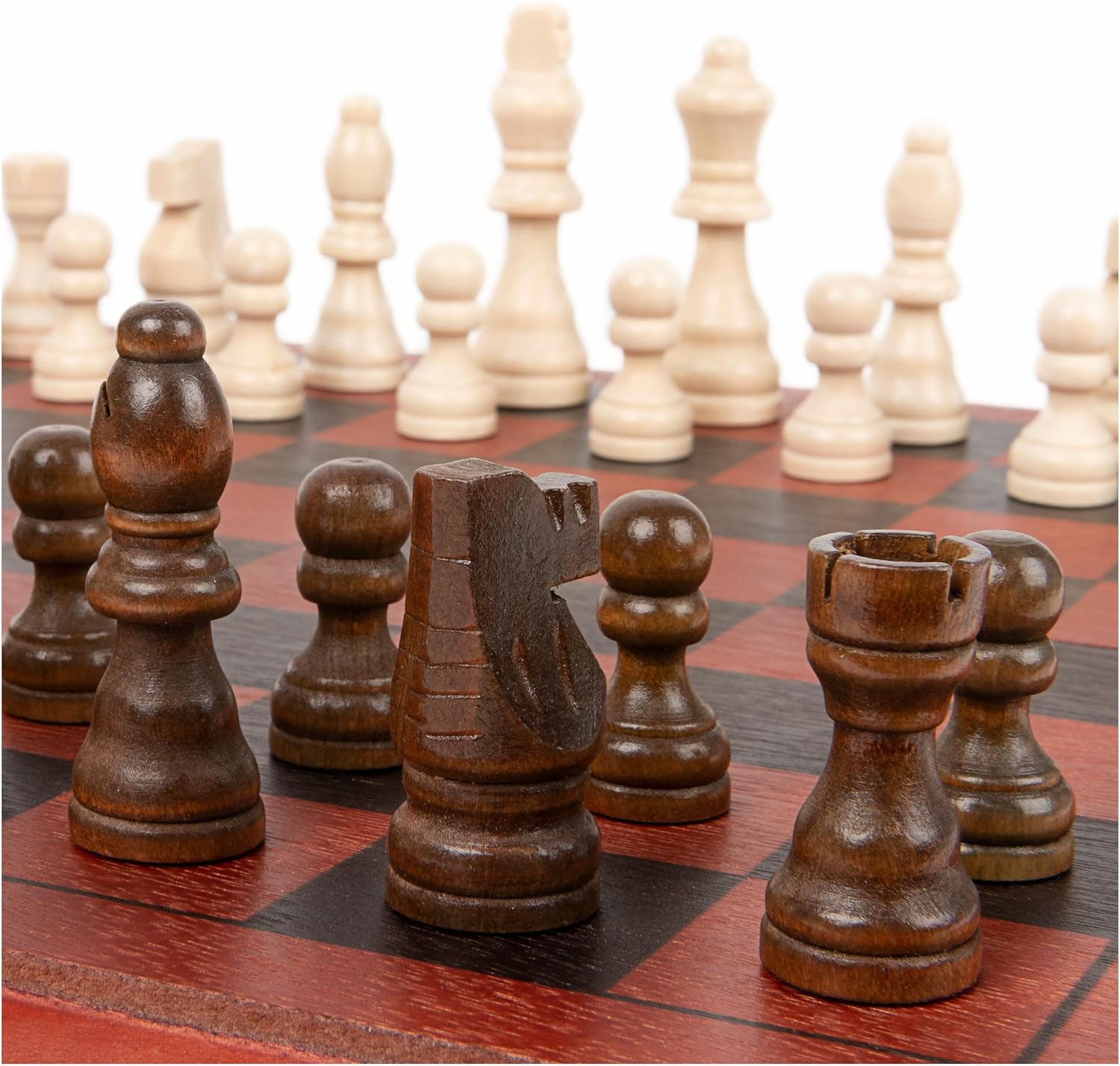 - DESIGN PREMIUM: con il suo design pieghevole, i pezzi degli scacchi possono essere conservati nella scacchiera che si può portare in giro e non occupa molto spazio.