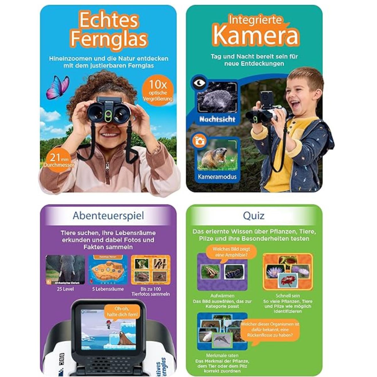 Potrà partire all’avventura, osservare da vicino il mondo che lo circonda grazie allo zoom 10x e persino catturare le sue scoperte con la fotocamera integrata.