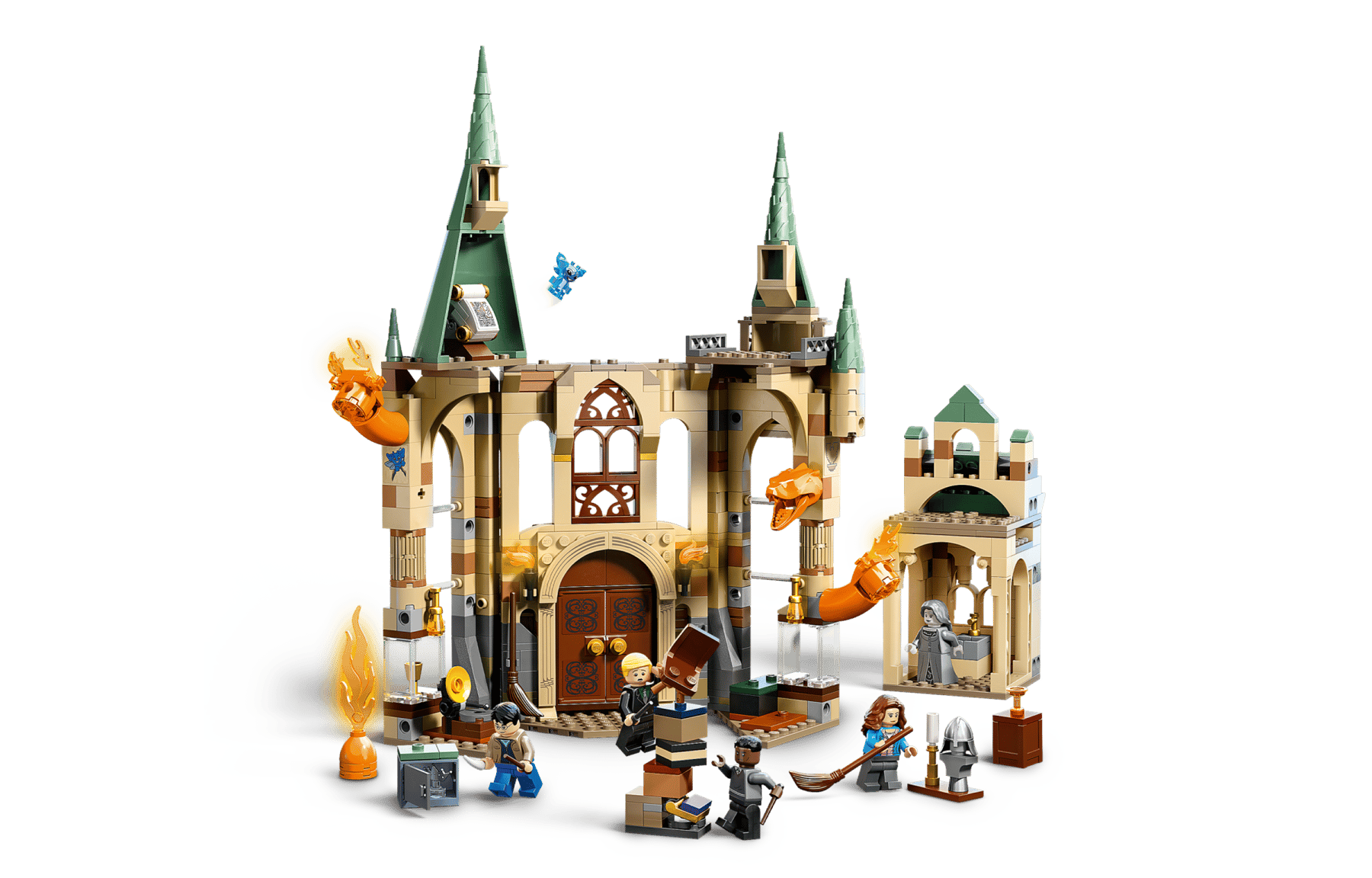 - 5 minifigure LEGO® e 2 personaggi: Harry Potter™, Hermione Granger™, Draco Malfoy™, Blaise Zabini e la Dama Grigia, oltre a un Ardemonio, che può essere ricostruito in un serpente di fuoco, e a un Folletto della Cornovaglia