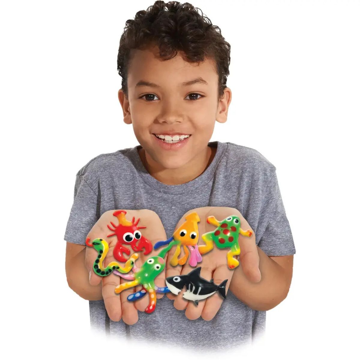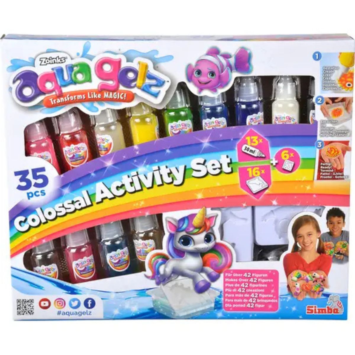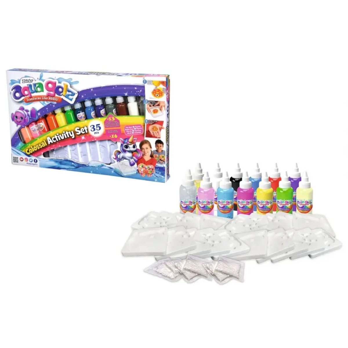L'Aqua Gelz Colossal Set è facile da usare e divertente creativo con una grande quantità di materiali. Con l'Aqua Gelz vengono create in un batter d'occhio figure 3D uniche e morbide e i bambini a partire dagli 8 anni possono dare libero sfogo alla loro creatività durante la progettazione. I diversi gel colorati vengono inseriti negli appositi stampini e poi posti a bagnomaria. Questo trasforma i motivi in una grande figura in pochi secondi. Il set comprende 13 flaconi di gel colorato, 16 forme diverse e 6 additivi per l'acqua. Il materiale è sufficiente per creare fino a 42 figure.