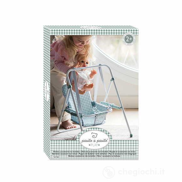 Ora puoi far divertire le tue bambole con l'altalena Tom Vichy verde. Ideale per bambole da 30 a 50 cm. Pieghevole, occupa poco spazio, facile da montare. Finiture di qualità, solide e stabili.