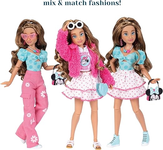 - Include 2 vestiti completi di accessori, permettendo infinite combinazioni di stile. Ideale per le bambine e ispirata ai personaggi Disney come Minnie e Topolino.