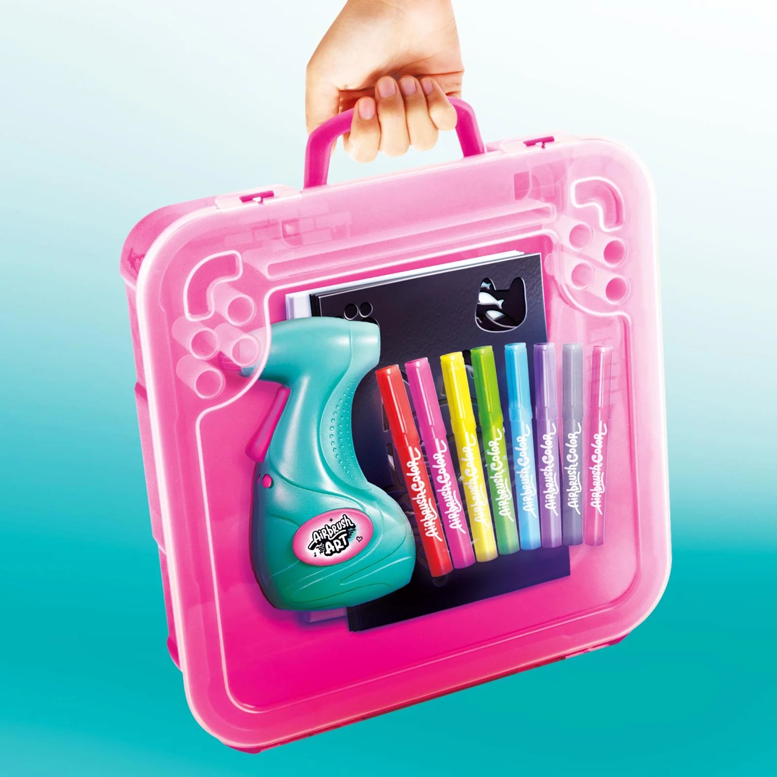 Crea fantastici disegni con l'aerografo Airbrush! Contiene tutto il necessario per creare disegni unici: un aerografo coloratissimo, pennarelli, stencil, fogli da disegno… Realizza creazioni uniche sovrapponendo gli stencil e creando vari livelli di colore! Poi, riutilizza la valigetta per conservare e trasportare i tuoi progetti!
