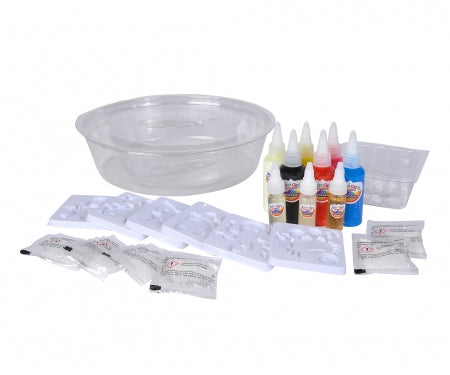 Inclusi 9 tubetti colore 30ml (anche GID e glitter), 6 stampini, 6 additivi acqua, 1 vaschetta per l'acqua.