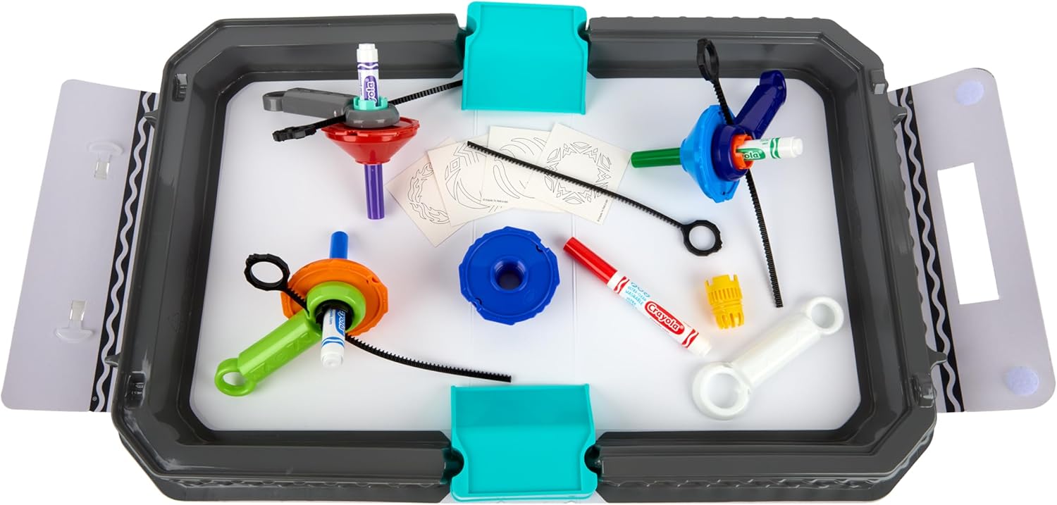 • SFIDA AMICI E FAMIGLIARI IN UNA BATTAGLIA EPICA: Migliora le tue abilità e gareggia con gli amici nella Crayola ColourWhirls Arena, grande ma facile da trasportare. L’arena può ospitare fino a 4 giocatori, rendendola perfetta per il divertimento di gruppo. Lancia le tue ColourWhirls nell’arena utilizzando le rampe per rendere la competizione ancora più dinamica e coinvolgente