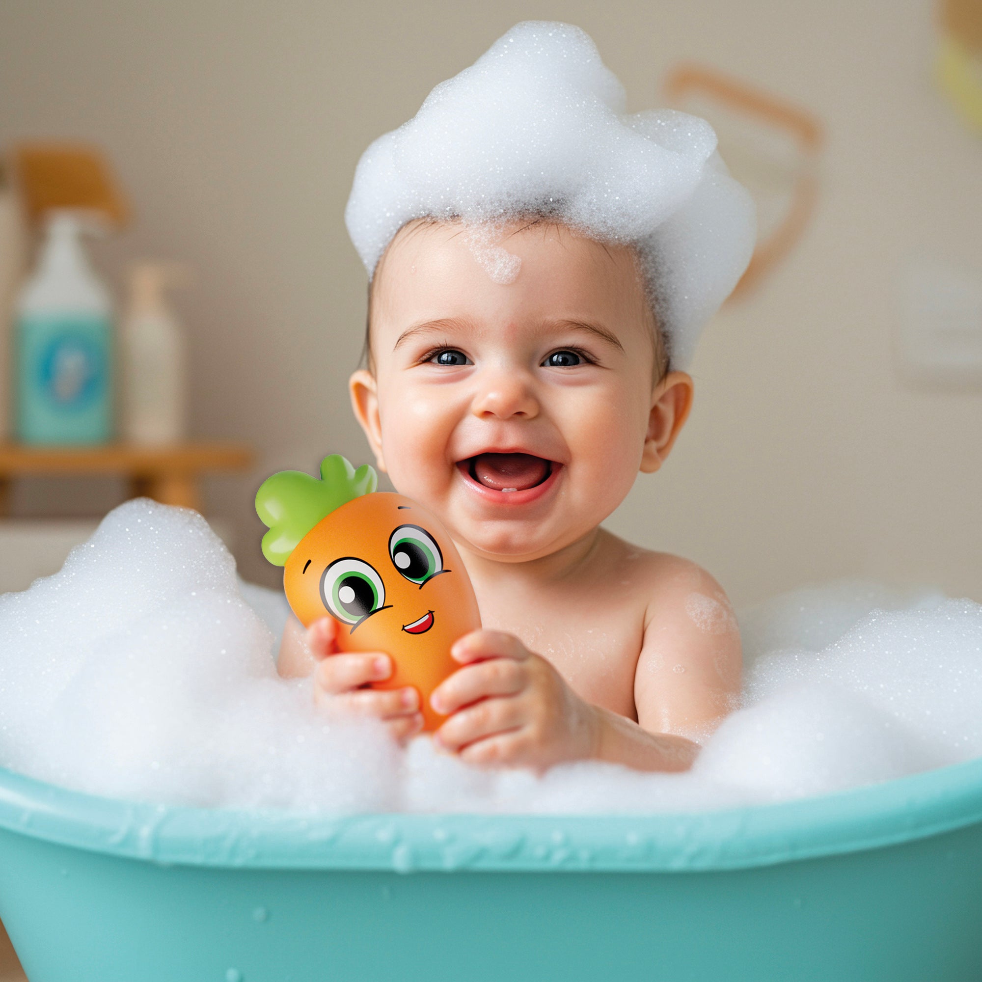 Carotina e i suoi amici diventano allegri giochi per il bagnetto! Allegri e colorati, questi simpatici ortaggi trasformano la routine del bagnetto in un momento di gioco e divertimento!
