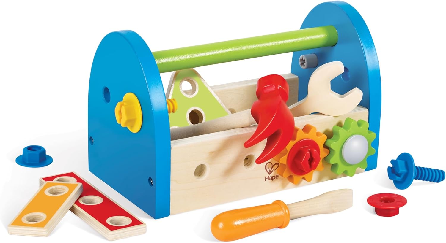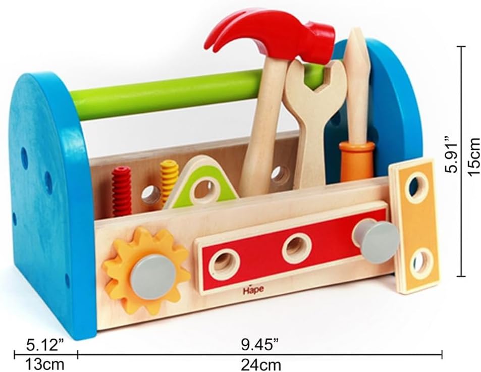 - CASSETTA E ATTREZZI IN LEGNO: Facile da portare grazie alla maniglia, questa cassetta in legno è sicura e durevole. Gli attrezzi in legno e le parti in plastica garantiscono un gioco di qualità per il tuo bambino.