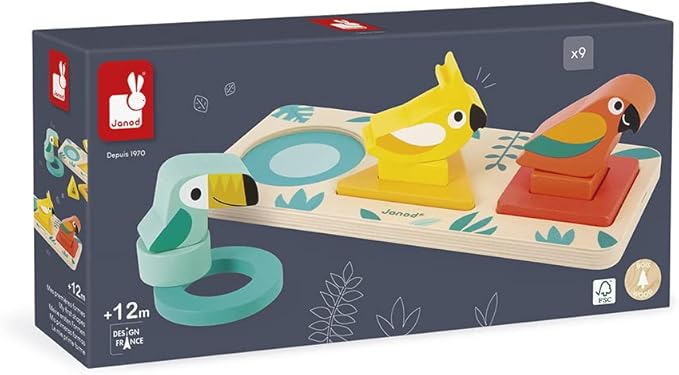 - INCASTRO DI FORME: 3 uccellini colorati per accompagnare il bambino durante i suoi primi apprendimenti. L'obiettivo del gioco? Incastrare i 9 pezzi al posto giusto e nell'ordine corretto sul supporto, per consentire agli uccellini di appoggiarsi comodamente. Ciascun pezzo è diverso, per stimolare lo spirito di osservazione del bambino durante la manipolazione.