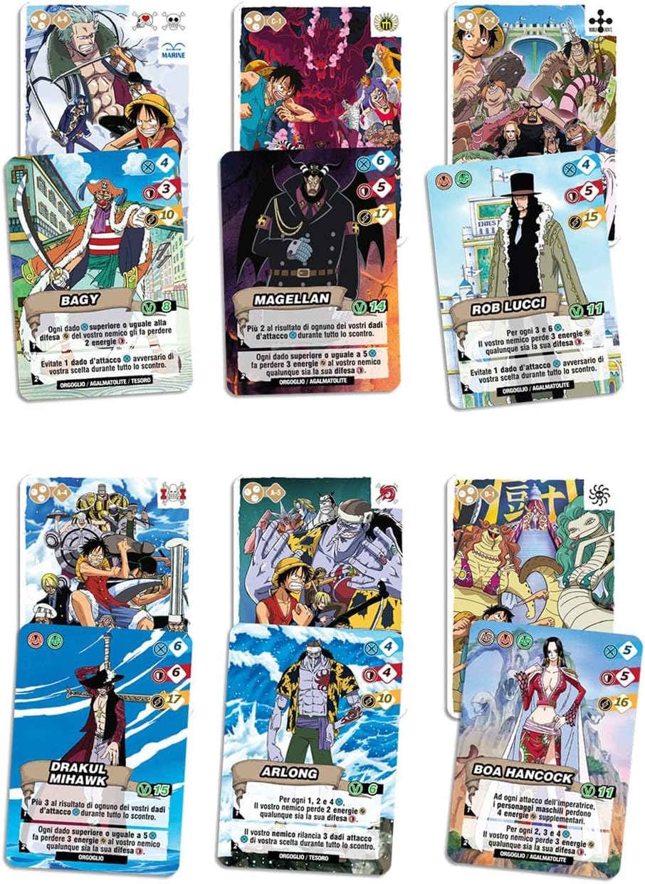 One Piece L'Isola dell'Avventura offre un’esperienza di gioco coinvolgente per 2-6 giocatori dagli 8 anni in su. Scegli tra due modalità: Battaglia, dove collaborare con la tua squadra per sfuggire a Pirati e Marine, o Squadre, in cui guidare la tua ciurma nella conquista di una delle 27 isole iconiche dell’universo One Piece. Questo gioco combina strategia e cooperazione, permettendo di rivivere le emozioni più intense della serie in un’avvincente sfida tra giocatori.