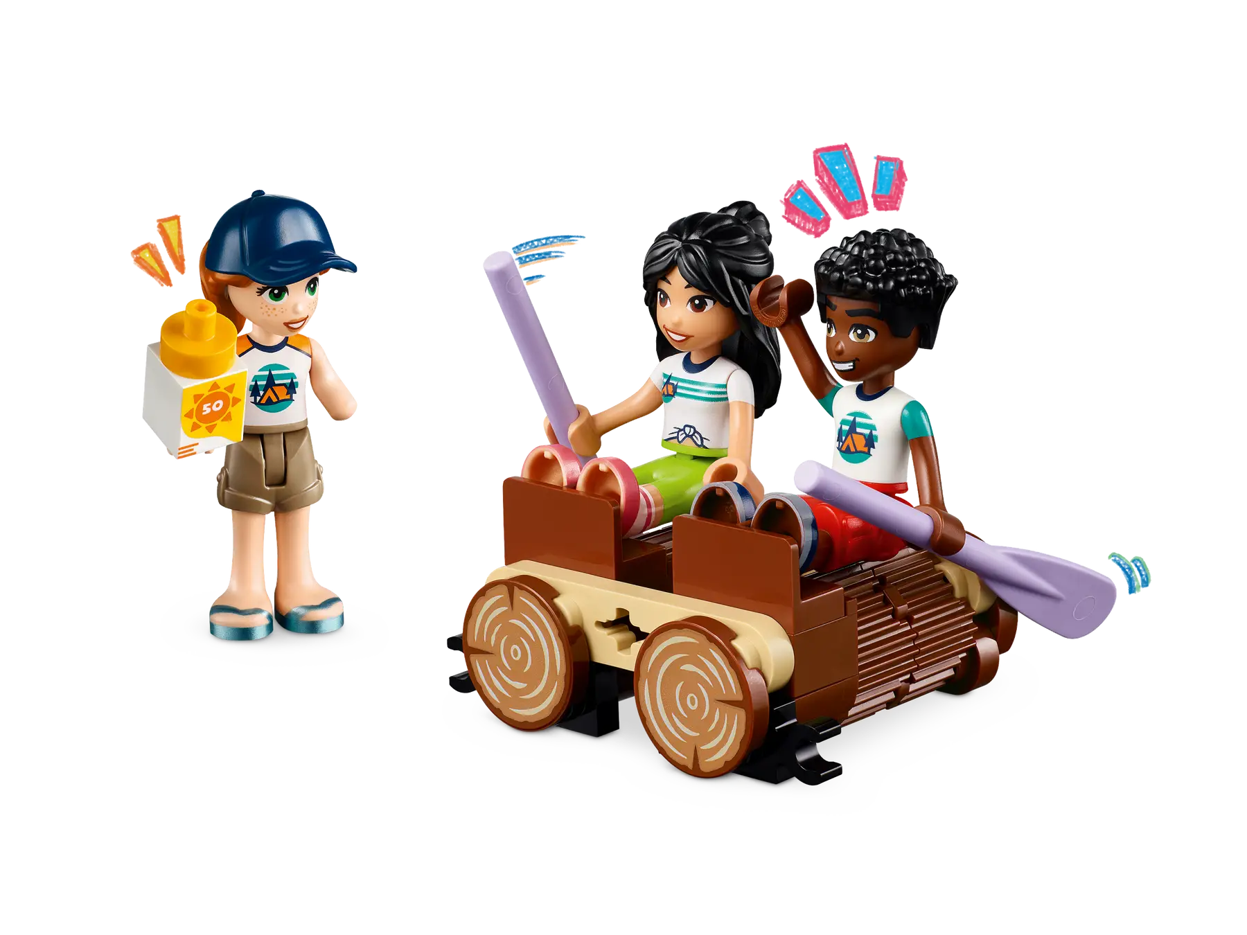 Questo set LEGO Friends è ricco di accessori per infinite possibilità di narrazione di storie. All’interno del campo avventure puoi noleggiare l’attrezzatura, un frigorifero con snack, una doccia, un kit di pronto soccorso, trofei e altro ancora. Dopo una giornata piena di divertimento, gli amici possono incontrarsi nella zona comune o fare una partita a ping pong.