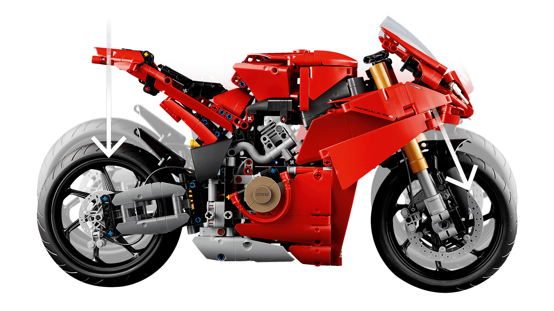 - Motocicletta Ducati Panigale V4 S LEGO® Technic: il modello è ricco di fantastici dettagli e caratteristiche autentiche, come le sospensioni anteriori e posteriori e la funzione sterzante