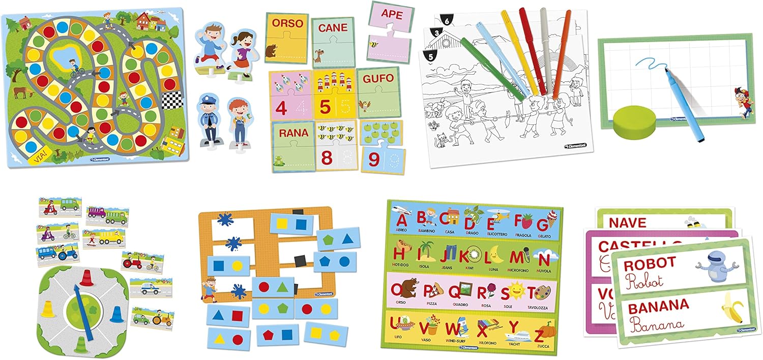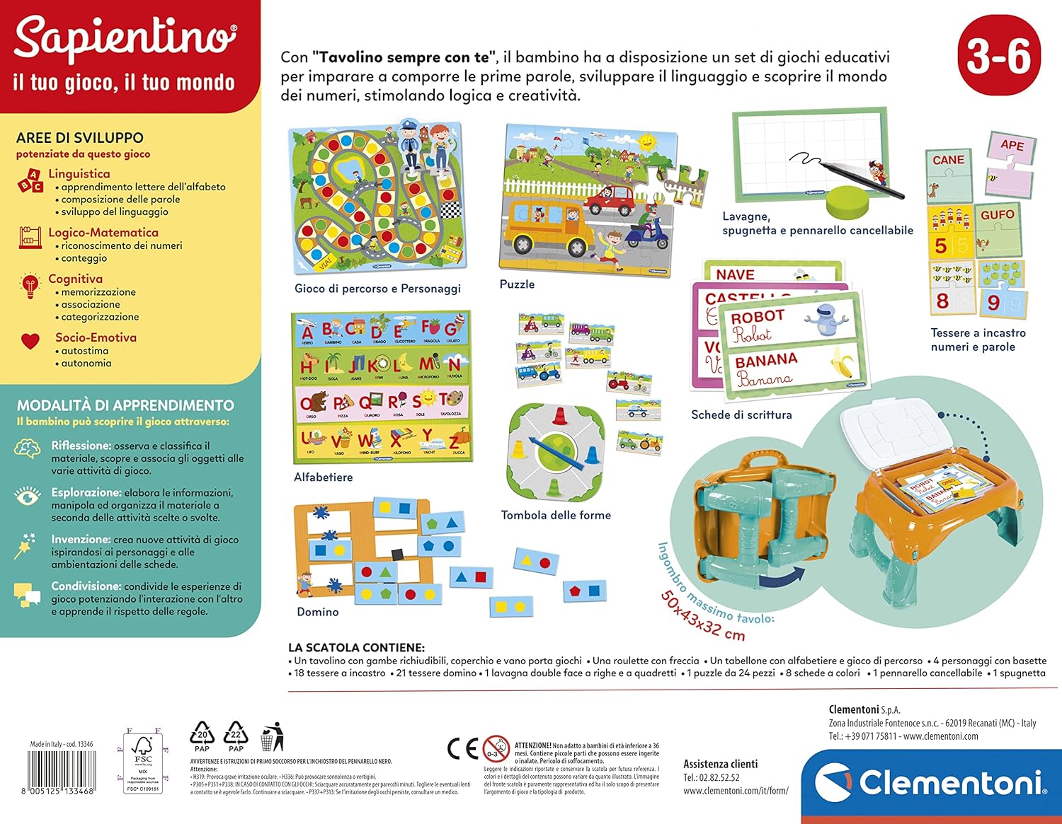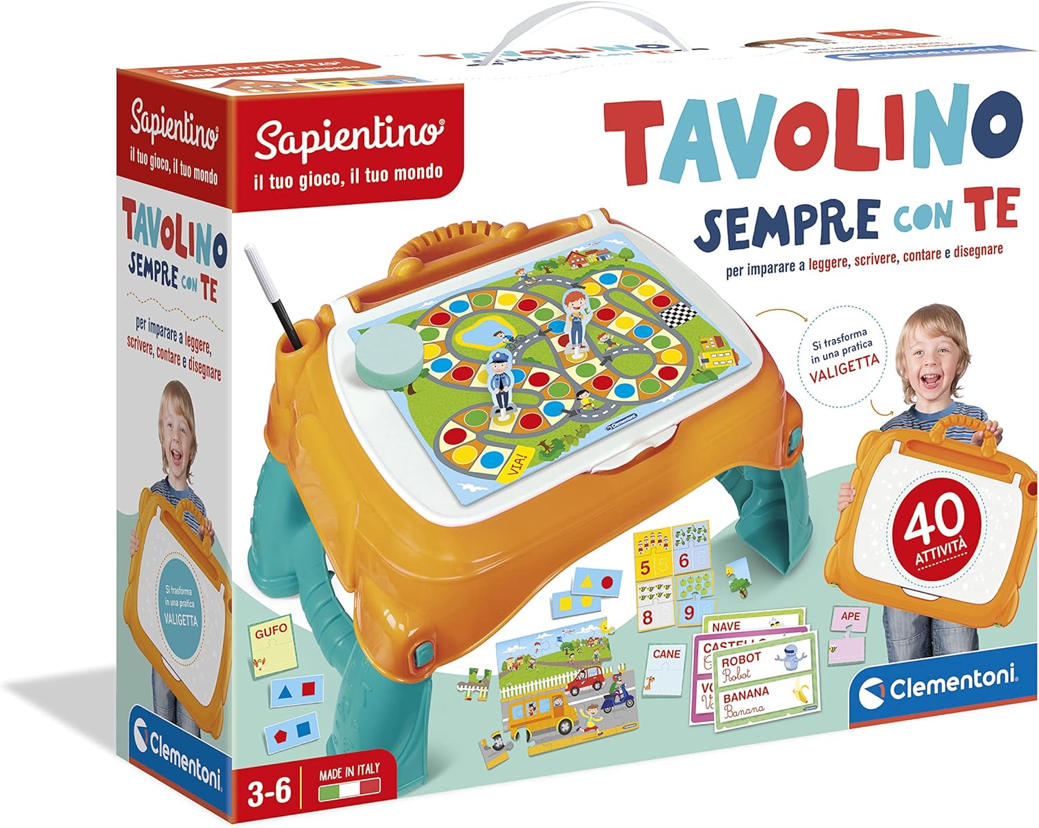 - COSA CONTIENE: gioco educativo Made in Italy, adatto per bambini dai 3 ai 6 anni, include un tavolino richiudibile con vano porta giochi, schede di scrittura e attività, puzzle e giochi di associazione, tabelle, tessere e un pennarello cancellabile