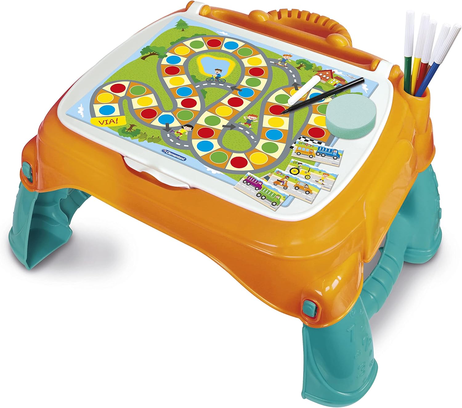 - COME GIOCARE: grazie al design portatile e al vano porta giochi integrato, il tavolino può essere chiuso e trasportato ovunque; offre una superficie di gioco per esercitarsi a leggere, scrivere, riconoscere forme e colori in modo divertente e pratico