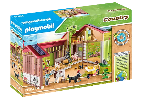 Scopri le divertenti avventure della fattoria con il playset della Grande azienda agricola di PLAYMOBIL! Usa la gru di carico rotante ed estensibile per trasportare facilmente carichi pesanti all’interno della fattoria. Il Trattore con accessori (71305 - venduto separatamente) può rifornirsi alla stazione di ricarica elettrica utilizzando l'energia dei pannelli solari posti sul tetto. Naturalmente gli animali non possono mancare nella fattoria: mentre le mucche pascolano, i maiali si godono un bagno rilassante nel fango. Con molti animali della fattoria e numerosi accessori. La grande fattoria agricola di PLAYMOBIL invita i bambini dai 4 anni in su a scoprire la vita di campagna. I set ricchi di dettagli e di simpatici personaggi ispirano i bambini a fantasiosi giochi di ruolo e incoraggiano un uso consapevole delle nostre risorse naturali.