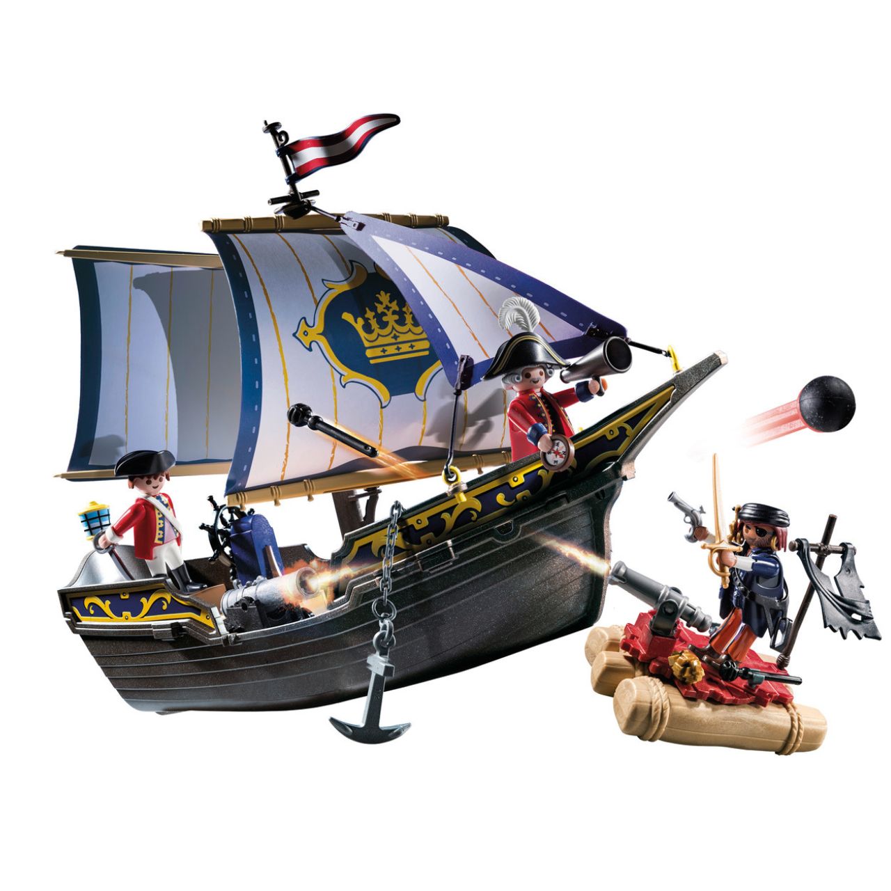 - Divertimento per piccoli pirati: Nave della Marina Reale PLAYMOBIL con 2 soldati, zattera dei pirati e tanti accessori per un gioco realistico