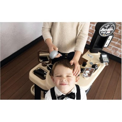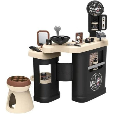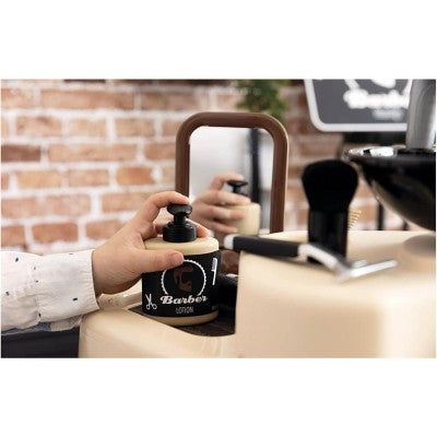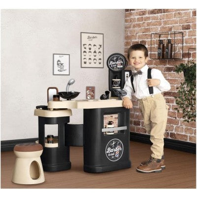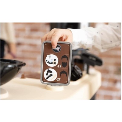 Divertiti con il primo barbiere! Gestisci il tuo barbiere prendendoti cura dei tuoi clienti. Ogni spazio ti permetterà di tagliarti i capelli, la barba o fare lo shampoo! Senza dimenticare il corner TPE per ricevere i pagamenti. Descrizione del prodotto : - Scopri il primo barbiere sul mercato! - Tuo figlio sarà in grado di gestire il proprio barbiere! - Molto completo è composto da una zona parrucchiere, una zona shampoo e un bancone mercantile. Il tuo bambino potrà così mettersi nei panni di un barbiere, di un parrucchiere e di un venditore. - Lo spazio con la toletta ha 1 sgabello, 1 specchio rimovibile e aree di stoccaggio. La zona shampoo è dotata di 1 bacinella con nebulizzatore meccanico e pulsante cric crac. - Lo spazio esercente, invece, è costituito da un angolo di pagamento con TPE e biglietti magici, un registratore di cassa con cassetto chiudibile a chiave, un pannello di segnaletica meccanica e un opuscolo che mostra le cure offerte e il loro prezzo. - 19 accessori sono inclusi in modo che il tuo piccolo possa sfruttare al massimo le possibilità di gioco: lozioni schiumogeni, crema, pennello da barba, rasoio, pettine, forbici, trimmer meccanico (lunghezza di taglio: 1, 2, 3), bancomat , scatola dei biglietti, monete... - Una volta terminato il gioco, il prodotto si ripiega per risparmiare spazio. - Struttura principale soffiata per garantire solidità e robustezza nel tempo. - Altezza piano di lavoro: 48,5 cm. - Dimensioni: L.69 x P.48 x H.91,5cm
