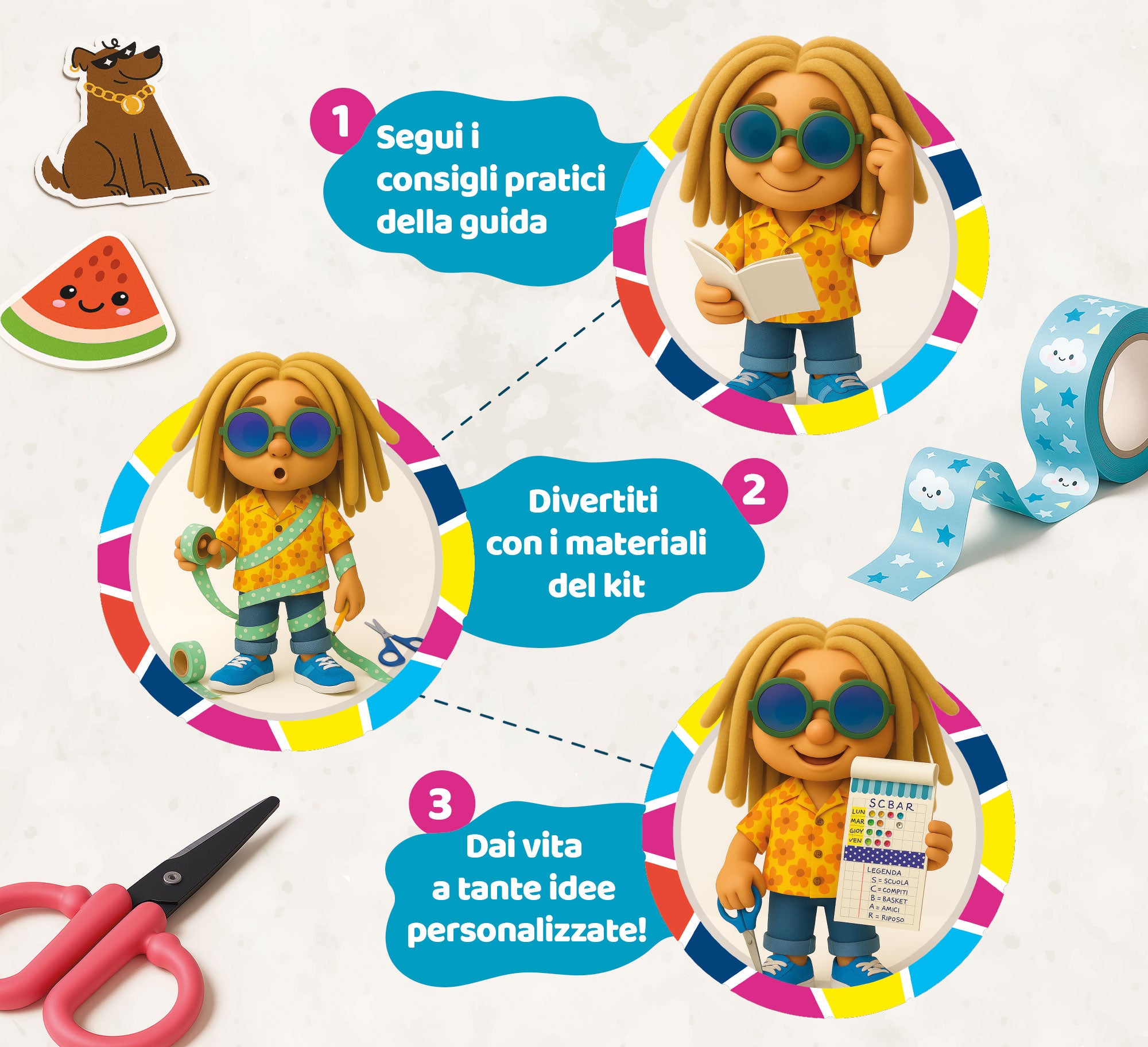 Questo kit creativo stimola la fantasia e la manualità dei bambini attraverso la creazione e la personalizzazione di oggetti di cartoleria. All’interno del kit, tanti materiali colorati e divertenti per decorare e organizzare il proprio spazio creativo.