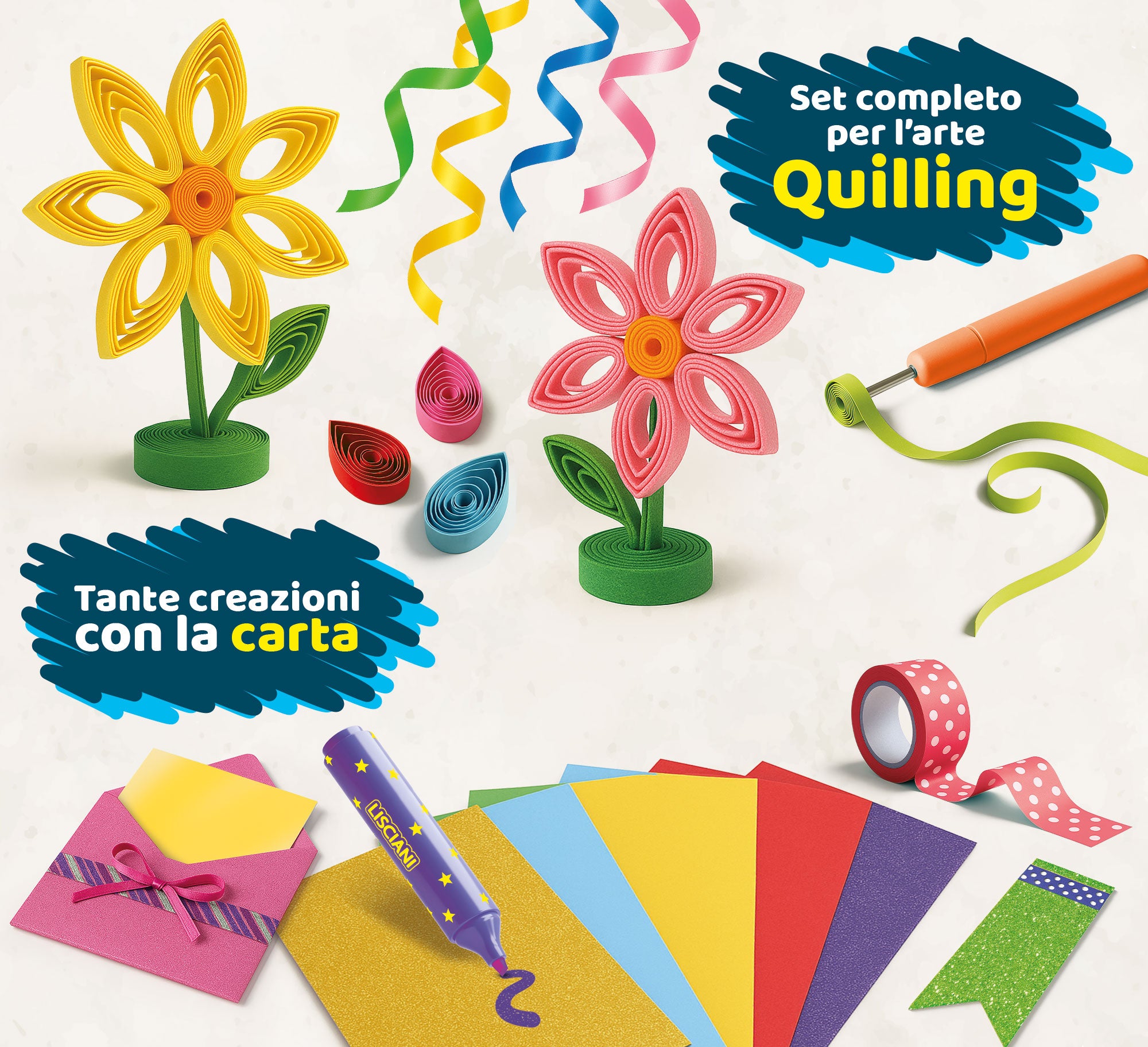 Un kit completo super colorato per dare vita a fantastici progetti a “strisce”! Il set include un pennarello con stampino a stella, nastri decorativi, fogli colorati e glitterati, forbici e righello per realizzare fantastiche creazioni. Inoltre, un kit per l’arte quilling completa questo set creativo, perfetto per stimolare fantasia e precisione!