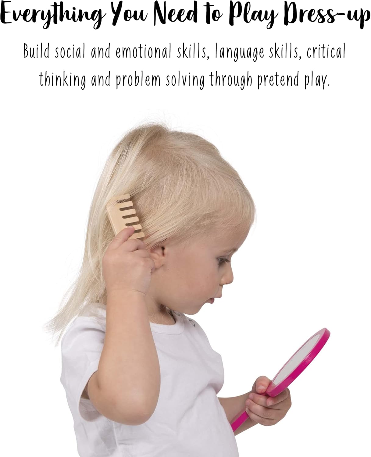 - Set completo: grazioso beauty case che contiene tutto il necessario per farti bella; Completo di 9 accessori in legno massiccio: un grande specchio, un set da trucco con pennello e specchio integrato, 2 rossetti, 2 smalti, 1 matita nera per gli occhi, 1 profumo, 1 pettine