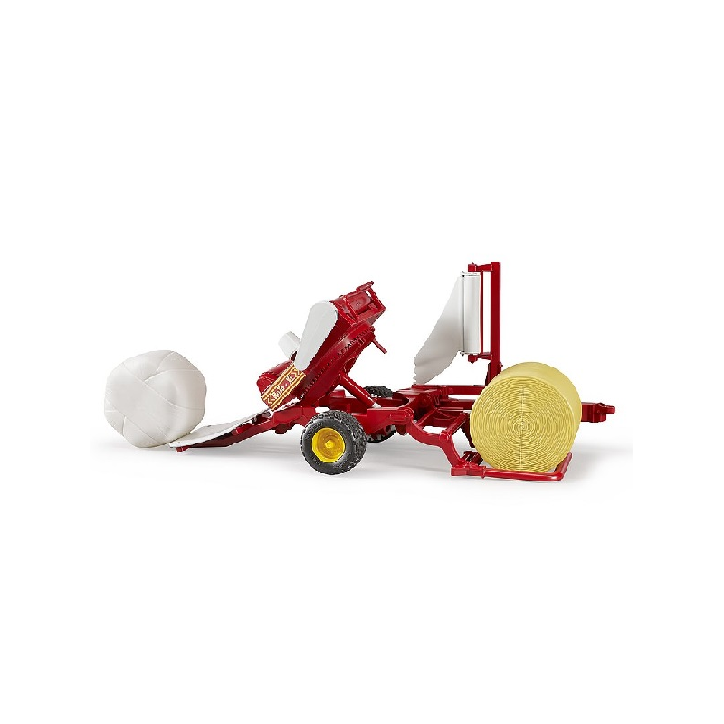 Il raccoglitore per balle di fieno di Bruder si presenta con le tradizionali caratetristiche di fedeltà al dettaglio e robustezza di Bruder. Così, proprio come nella realtà, la balla viene sollevata sulla tavola rotante attraverso il bilanciere caricato frontalmente. Dopo che il rocker di carico si abbassa la tavola rotante girevole si mette in moto, in modo da simulare il processo di avvolgimento. La confezione include una balla ocra-marrone e una nera. Per aggiungere divertimento al gioco, il modello può essere combinato con il Rollant Claas 250 rotopressa [art. no:. 02.121] e con tutti i trattori della serie Profi (non inclusi). Non adatto a bambini di età inferiore a 36 mesi.