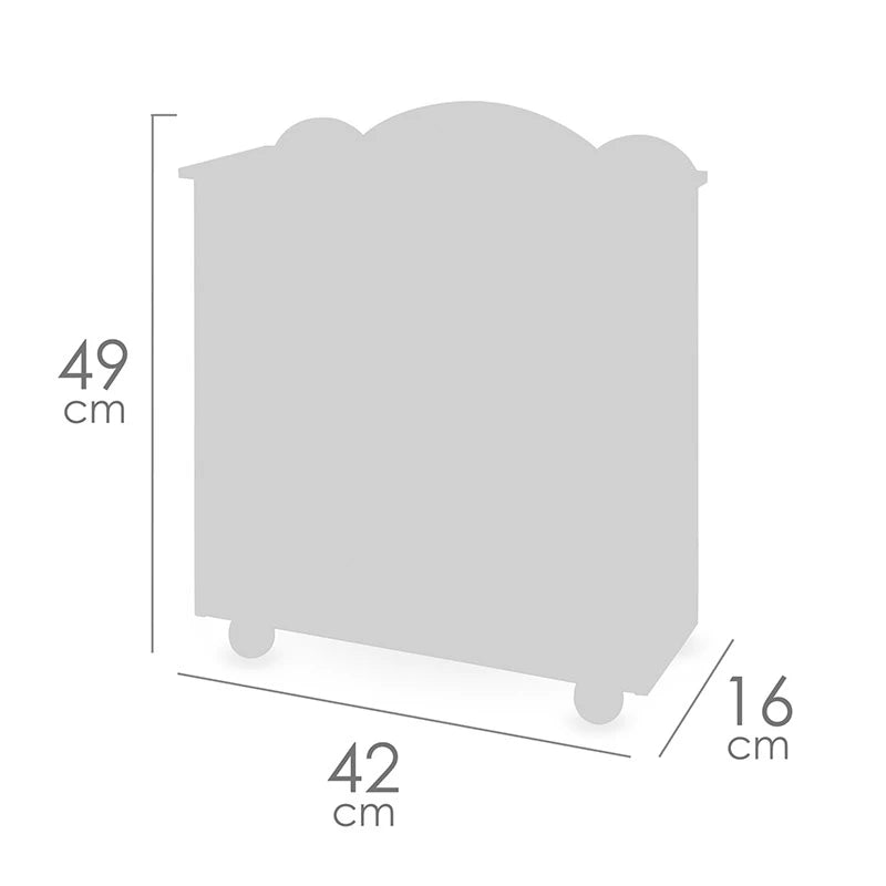 Misure approssimative dell'armadio: 49 cm di altezza, 42 cm di larghezza e 16 cm di profondità.