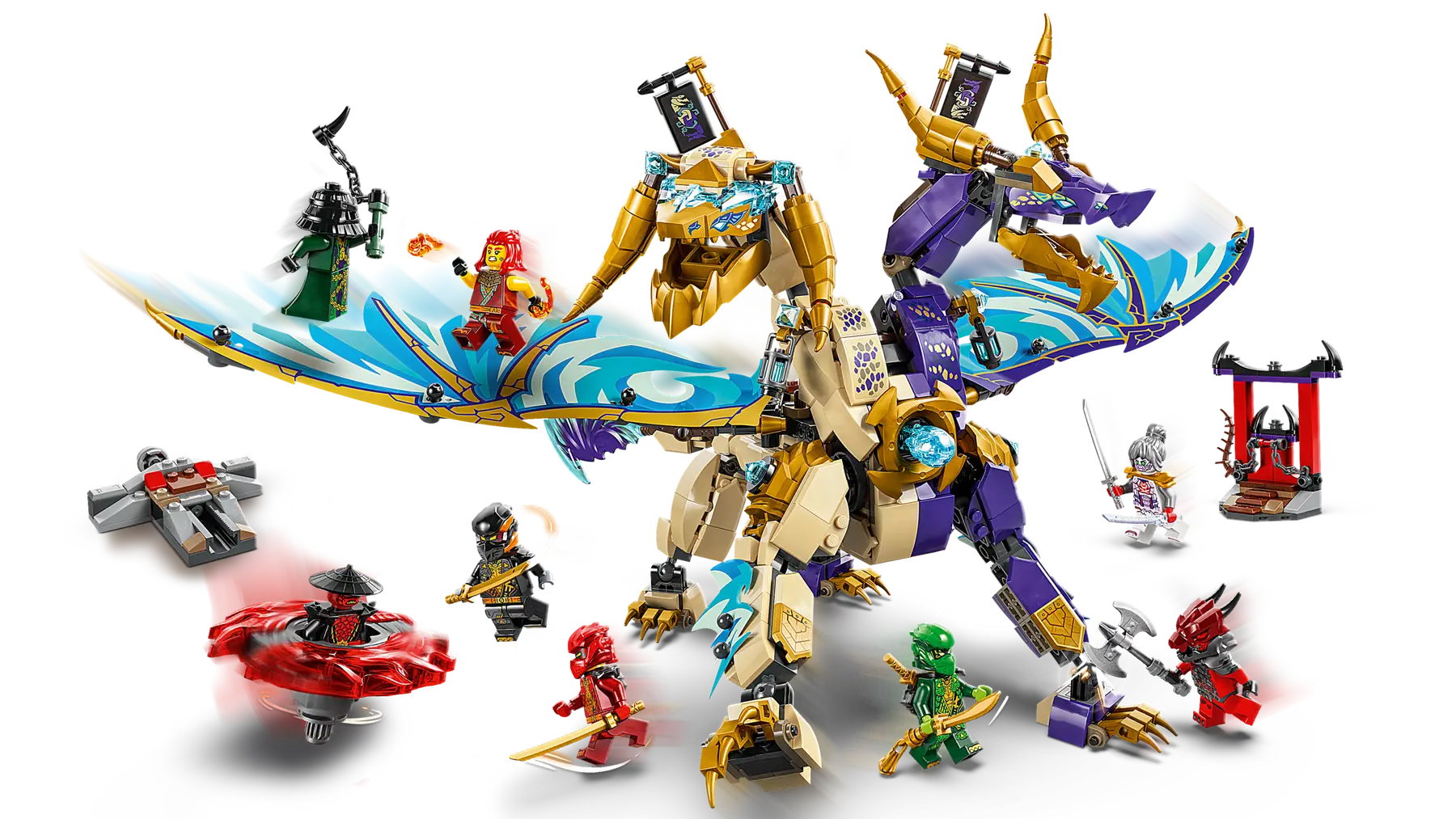 - Drago NINJAGO® interattivo: i bambini possono attivare uno shooter nel petto del drago e azionare le sue grandi ali in lamina utilizzando una leva sul dorso