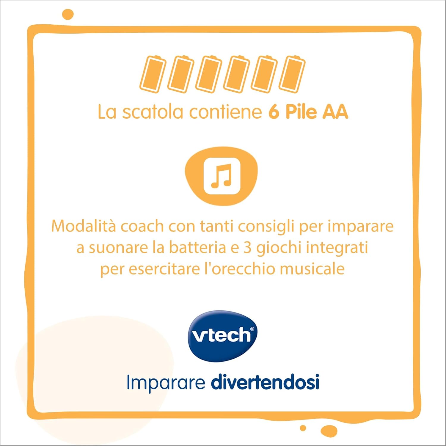 - APPRENDIMENTO INTERATTIVO: seguendo le indicazioni luminose, il bambino può riprodurre melodie, esercitarsi in sequenze complesse e registrare le sue creazioni con il microfono integrato